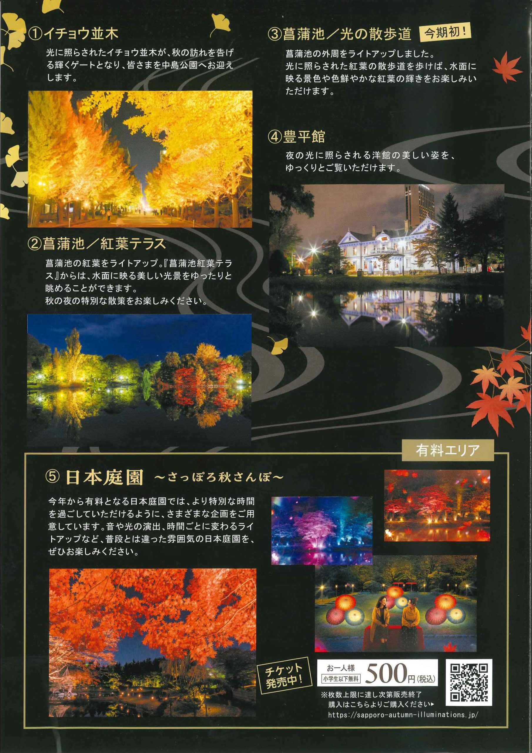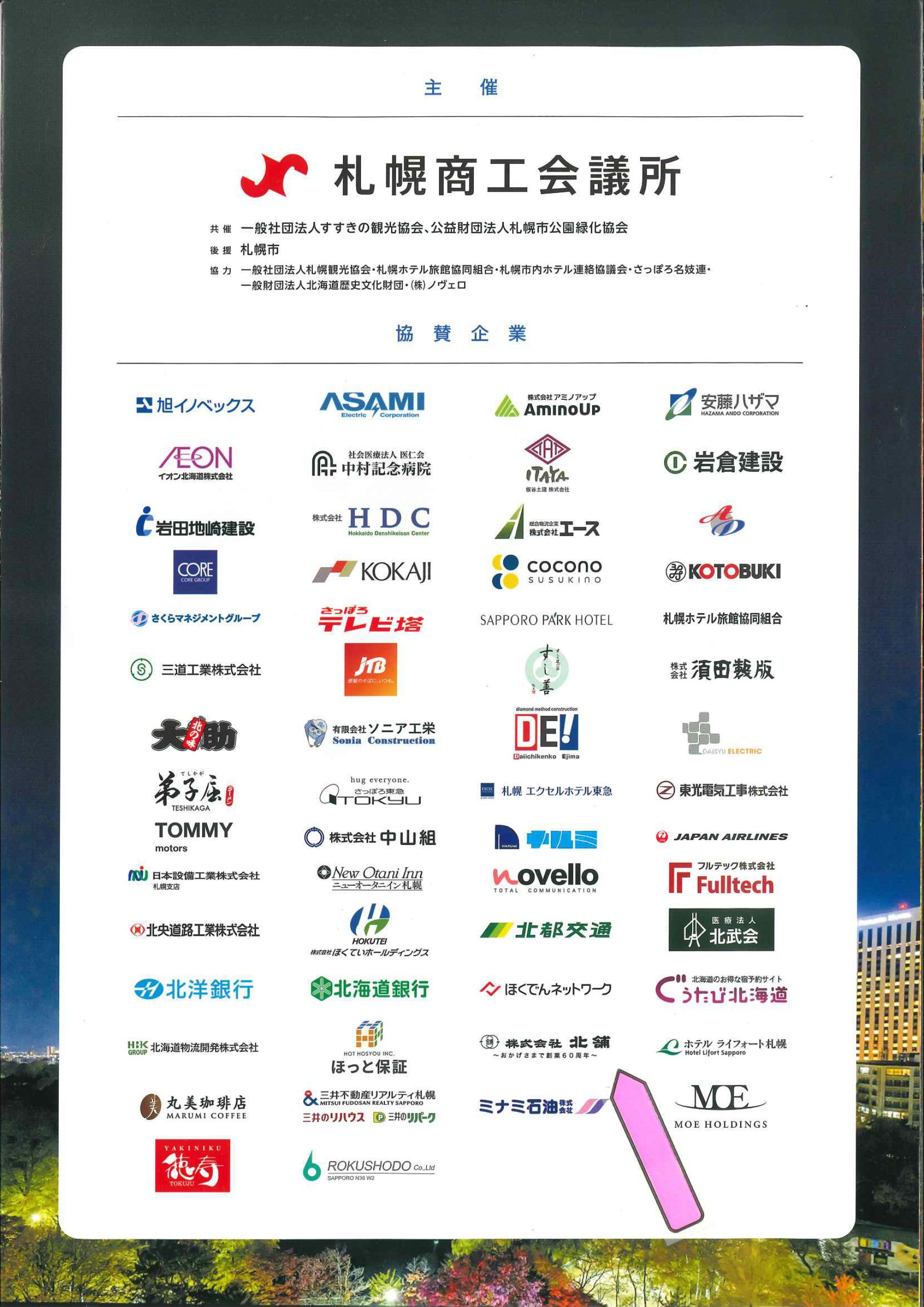 2025年10月24日(金)~11月3日(月・祝)の期間、中島公園にて開催される、札幌商工会議所主催「SAPPORO AUTUMN ILLUMINATIONS 中島公園紅葉ライトアップ」 へ協賛いたしました。ぜひ皆様にもご覧いただきたいと思います。
