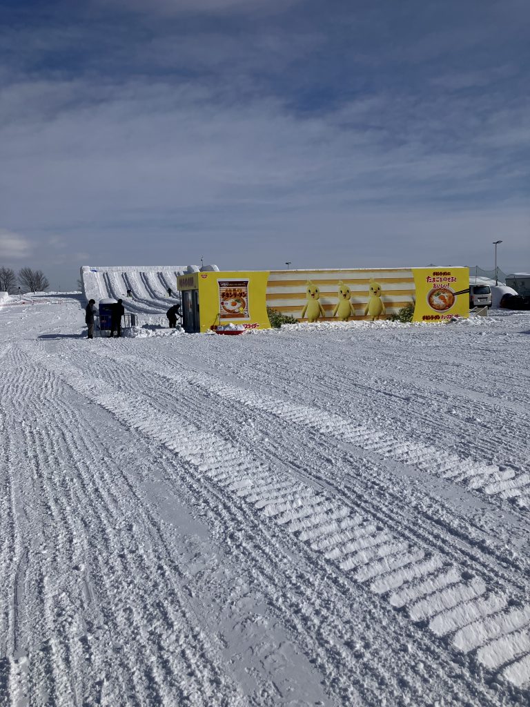 弊社では本年度も設営協力企業として、つどーむ会場のチューブスライダーの設営や雪像の土台作り等会場設営に携わらせていただきました。